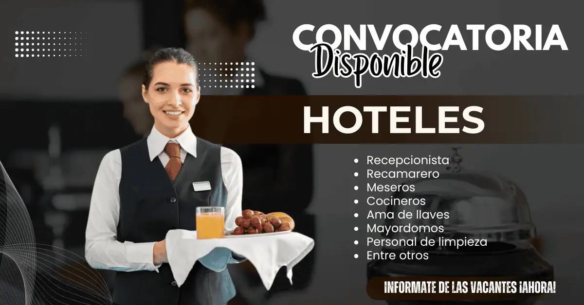 Hoteles y resorts buscan personal para áreas de recepción, limpieza, cocina y atención al huésped.