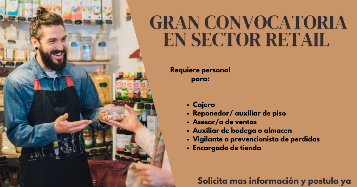 Tiendas y cadenas comerciales buscan personal para atención al cliente, ventas, caja y reposición de productos.